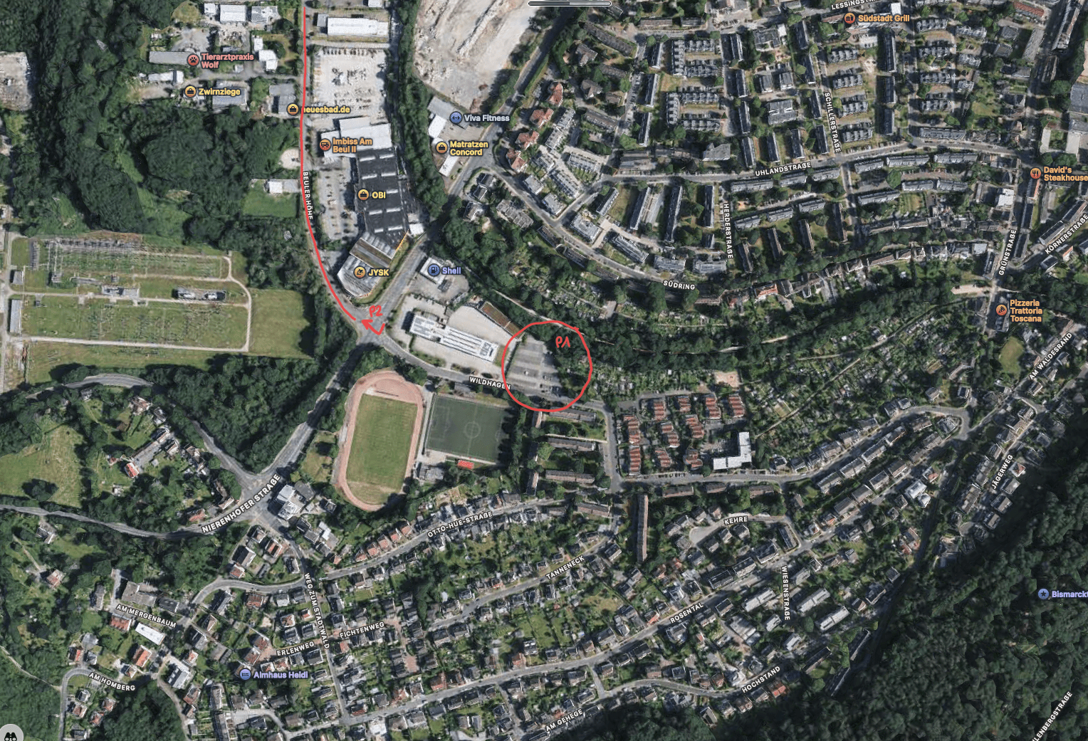 Hier findet ihr den Parkplatzplan. Ein größflächiger Parkplatz mit E-Ladesäulen steht "Am Wildhagen" zur Verfügung. Zusätzlich kann einseitig auf der Straße "Beuler Höhe" geparkt werden. Helfer*innen des TuS Hattingen stehen als Parkplatzeinweiser bereit.